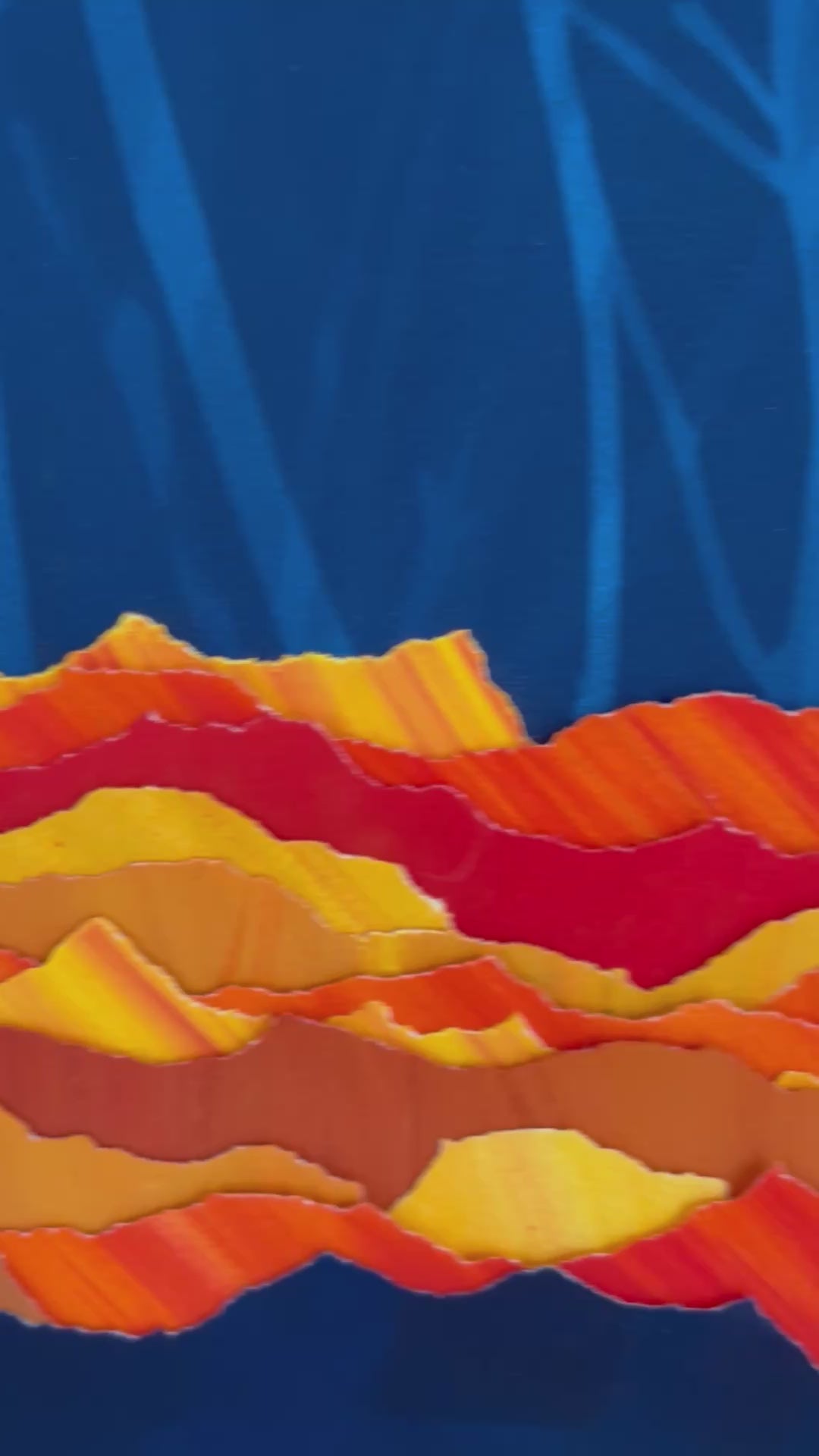 Sa profondeur bleue apaise, ralentit le regard, tandis que la ligne lumineuse — construite en strates de papier et de pigments — introduit une énergie contenue, presque vibratoire.